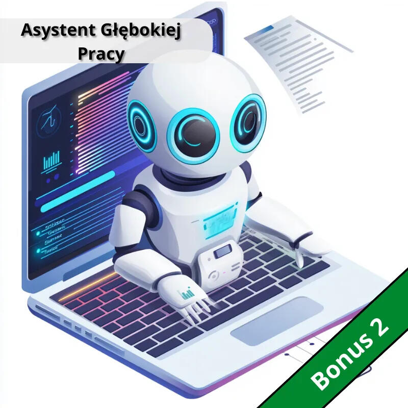 Mini-kurs: “Asystent Głębokiej Pracy” – Odkryj, jak korzystać z nowoczesnych technologii, takich jak sztuczna inteligencja i automatyzacja, aby wspierać swoją koncentrację i produktywność. Nauczysz się tworzyć workflow i używać narzędzi, które będą działać jak Twój osobisty asystent. Wartość: 397 zł. Premiera: Marzec 2025
